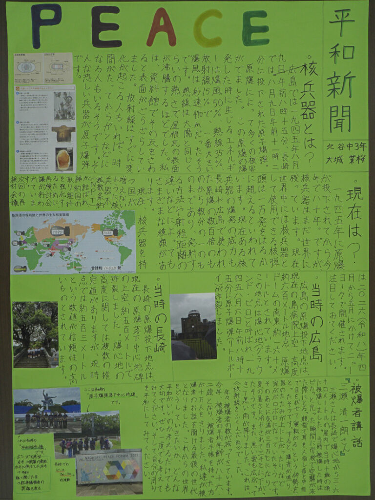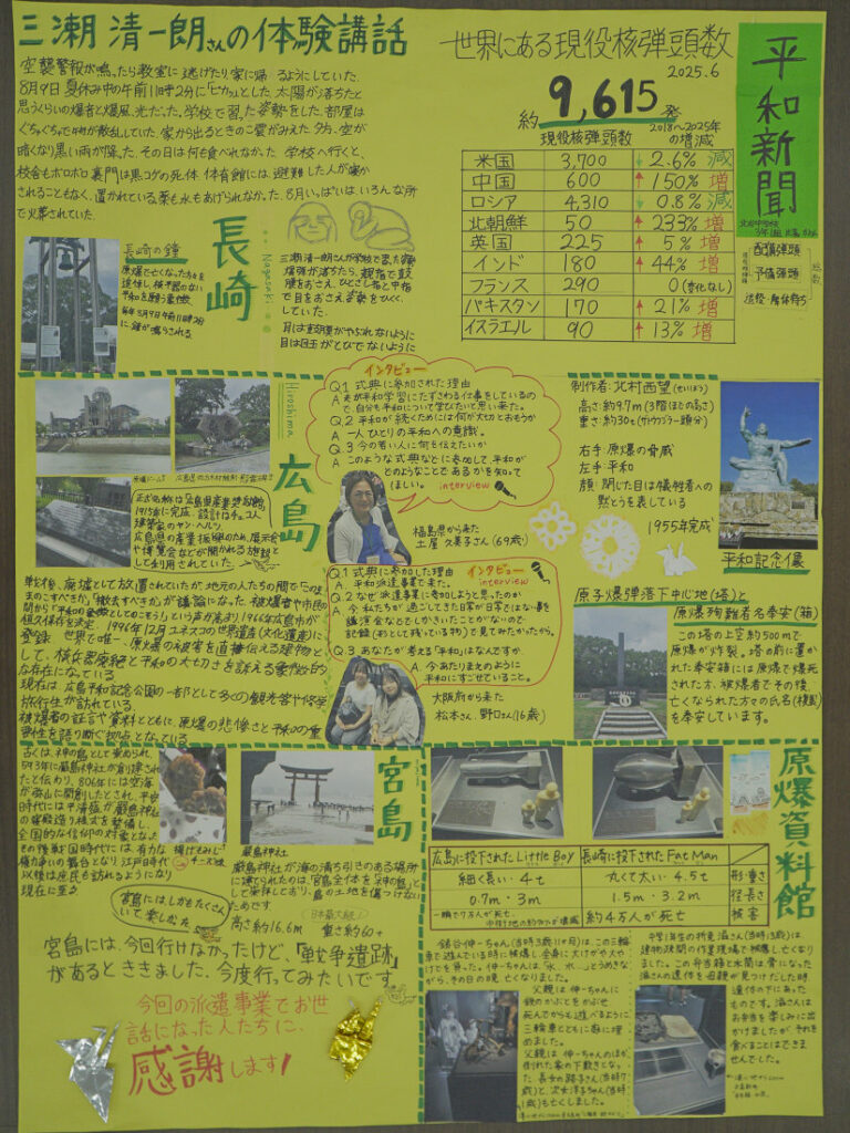 広島・長崎平和学習派遣者報告 (派遣者それぞれの学習報告新聞)